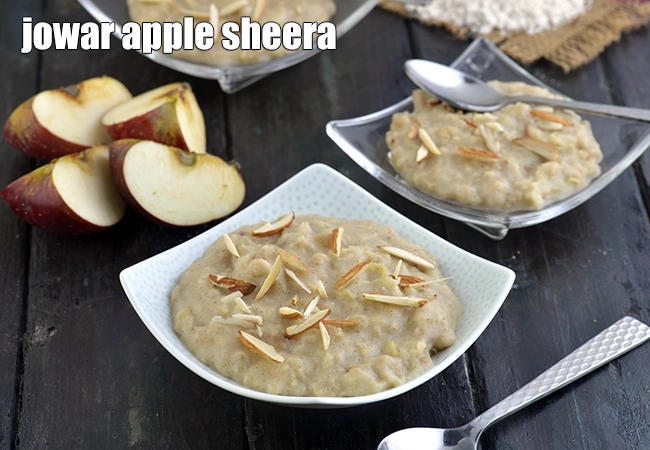 The jowar apple sheera recipe | no sugar gluten free sheera | healthy Indian sweet is made with the addition of cows milk and apples and sweetened with honey.