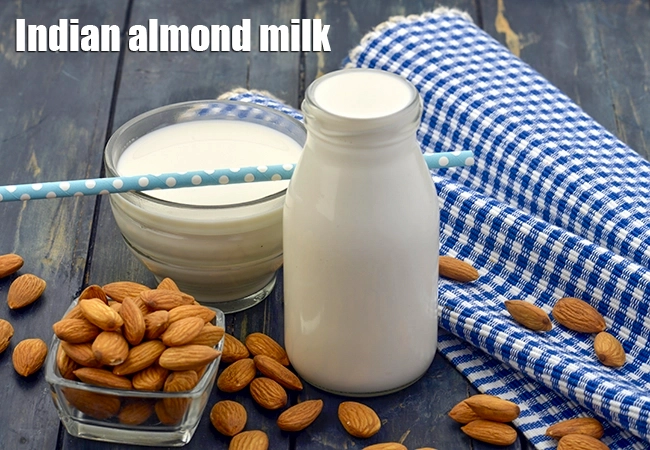 Indians love their badam and nothing like the homemade almond milk recipe | Indian almond milk recipe | unsweetened vanilla almond milk | instant almond milk | almond milk without soaking which is made of almonds and water.