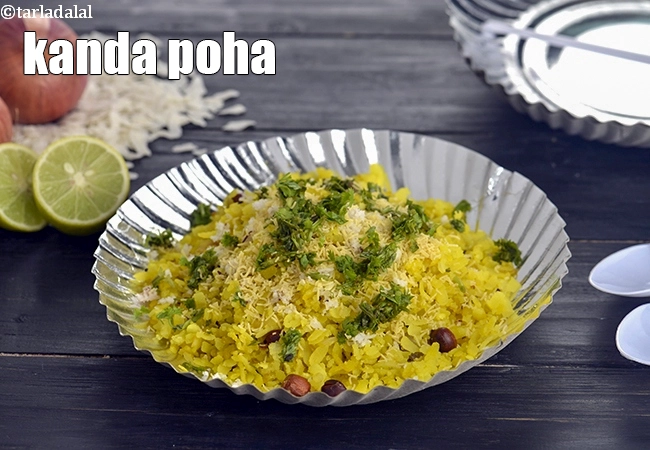 kanda poha recipe | Maharashtrian style kanda poha | kande pohe street food | onion poha | with … More..