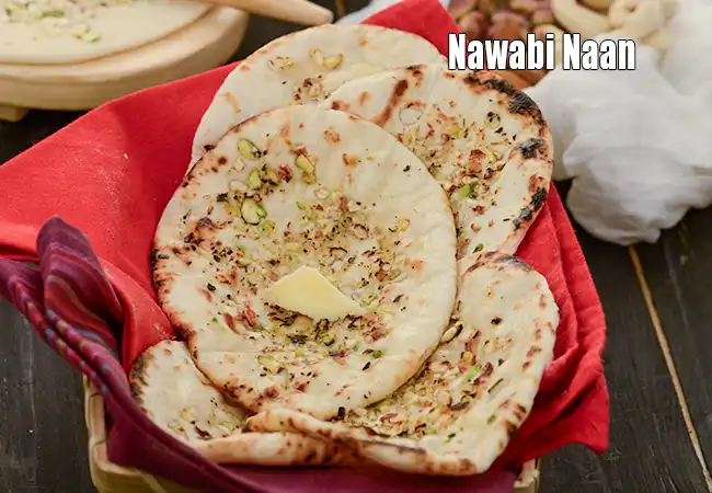 Think Nawabi, and luxury is the first word that comes to mind! Indeed, what better way to recreate that richness than by using mixed nuts. This scrumptious Nawabi Naan is an amazing creation of traditional tandoori naan studded with nuts. This gives you a lovely texture and mildly sweet flavour as you chew on the naan. Once you sprinkle the nuts on the rolled dough, roll it lightly once again, so that they stick to the dough and do not fall off when cooked in the tava. Serve this naan with a tangy, spicy Subzis / Curries to make a memorable meal.