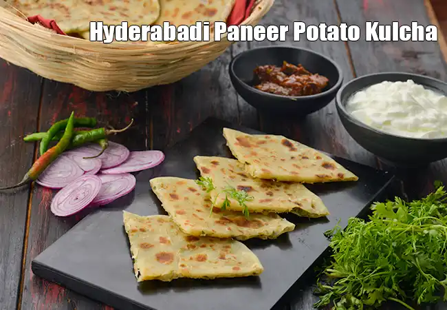 3. Hyderabadi Paneer Potato Kulcha a spicy and satisfying taste, which makes it fit to be served just like that without any elaborate side-dishes.