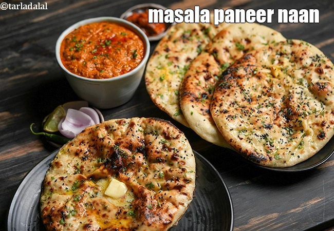 2. masala paneer naan recipe | Indian paneer butter masala naan | restaurant style paneer stuffed naan | paneer naan on tava is an Indian bread which will be enjoy not only by paneer fans but by those who don’t add paneer easily to their menu too. A flavourful stuffed naan with a filling of paneer, onions, green chillies and coriander, restaurant style paneer stuffed naan is indeed a dish that will set you apart as a gourmet chef!