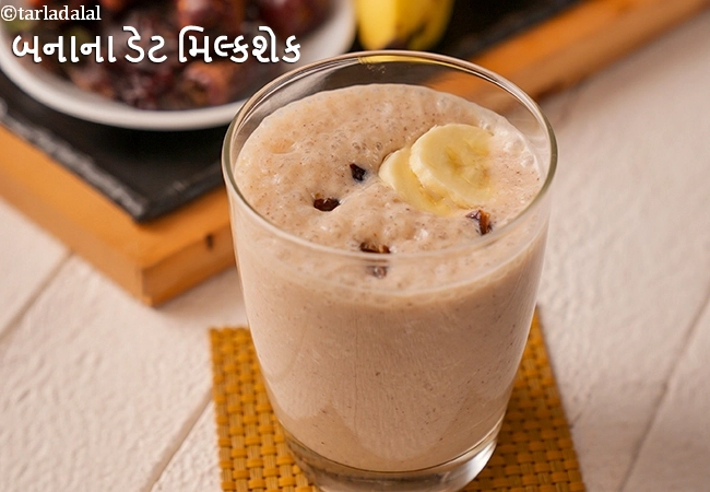 બનાના ડેટ મિલ્કશેક રેસીપી | ખજૂર બનાના સ્મૂધી | સ્વસ્થ ભારતીય બનાના ડેટ મિલ્કશેક | ક્રીમી બનાના શેક | ખજૂર સાથે બનાના મિલ્કશેક |