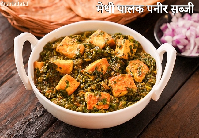 मेथी पालक पनीर सब्जी रेसिपी | पालक मेथी पनीर साग | भारतीय स्टाइल पनीर मेथी पालक | सूखी मेथी पालक पनीर की सब्जी | Methi Palak Paneer Sabzi, Palak Methi Paneer Saag