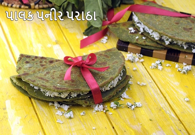 પાલક અને પનીરના પરોઠા | Palak Paneer Paratha, Healthy Spinach Paneer Paratha | પાલકનું તાજગીભર્યું લીલું રંગ આ પરોઠાને પનીર સાથે દેખાવમાં આકર્ષક બનાવે છે અને સાથે-સાથે સ્વાદિષ્ટ પણ બનાવે છે. અહીં પાલક આ પરોઠાના કણિકની પૌષ્ટિક્તામાં વધારો કરે છે, ત્યારે બીજી બાજુ તેમાં મેળવવામાં આવેલું કોબી, કોથમીર, લીલા મરચાં અને આદૂનું પૂરણ આ પરોઠાને મજેદાર બનાવે છે.