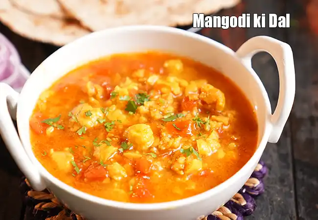 Mangodi ki Dal — made with dried lentil dumplings (mangodi), this dal reflects the desert heritage where pulses and dried storage foods were common.