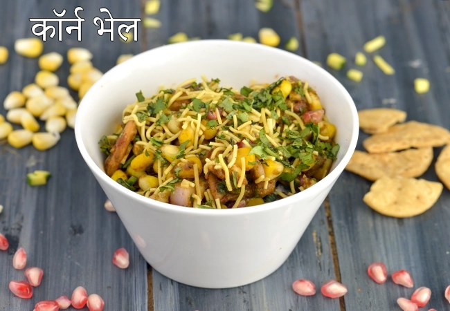 कॉर्न भेल रेसिपी | कॉर्न चाट | मकई चाट | ताजा मकाई भेल | corn bhel in hindi