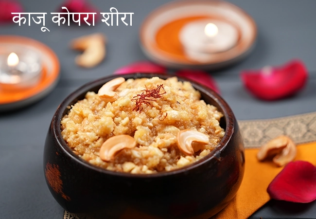 काजू कोपरा शीरा रेसिपी | नारियल और काजू का शीरा | भारतीय काजू और नारियल का हलवा | kaju kopra sheera in hindi