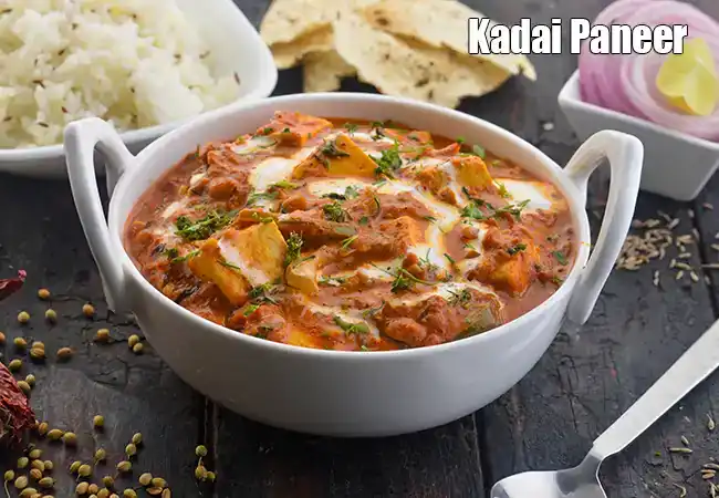 કડાઈ પનીરમાં પનીર અને શિમલા મરચાંને મસાલેદાર ટમેટાંની ગ્રેવીમાં પકાવવામાં આવે છે, જેમાં દરદરા ધાણા બીજનો ઉપયોગ થાય છે. કડાઈમાં પકાવવાથી તેમાં હળવો સ્મોકી ફ્લેવર આવે છે. ગ્રેવી વચ્ચે પણ શાકભાજી ક્રંચી રહે છે. આ એક લોકપ્રિય રેસ્ટોરન્ટ વાનગી છે, જે તંદૂરી રોટી સાથે પીરસવામાં આવે છે. આ વાનગી ચટપટી અને રંગીન છે.