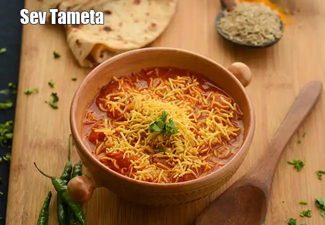 સેવ ટમેટા નુ શાક એક લોકપ્રિય ગુજરાતી ટમેટાંની કરી છે, જેમાં ઉપરથી સેવ ઉમેરવામાં આવે છે. ટમેટાં, જીરું અને ગોળથી આ વાનગીમાં મીઠું-ખાટું સ્વાદ આવે છે. આ ઝડપથી બનતી અને ચટપટી વાનગી છે. પૂરી સાથે ખૂબ જ સરસ લાગે છે. આ વાનગી લત લગાડી દે તેવી છે.