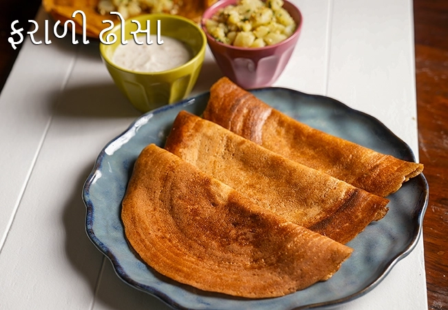 પરંપરાગત ઢોસાનું વ્રત-અનુકૂળ સ્વરૂપ છે, જે ચોખા અને દાળ વગર બનાવવામાં આવે છે। તે સાબુદાણા, રાજગરા અથવા બટાકાના ઘોળથી તૈયાર થાય છે। ઢોસો બહારથી કરકરો અને અંદરથી નરમ હોય છે। તેમાં હળવા મસાલાવાળી બટાકાની ભરાવણ ભરીવામાં આવે છે। ઉપવાસ દરમિયાન ચંદ્રદર્શન પછી ખાવા માટે આ ઉત્તમ વિકલ્પ છે।