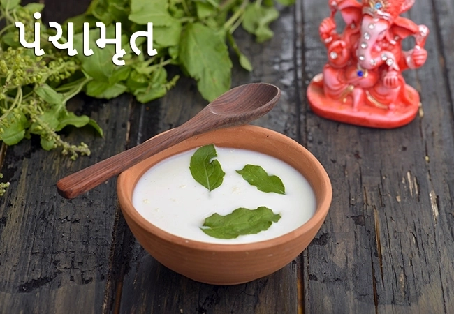 પંચામૃત પાંચ સાત્ત્વિક ઘટકો — દૂધ, દહીં, મધ, ઘી અને ખાંડ — થી બને છે। તે પૂજામાં અર્પણ કરવામાં આવે છે અને વ્રત પછી સેવન કરવામાં આવે છે। તેને અત્યંત શુભ અને પૌષ્ટિક માનવામાં આવે છે।