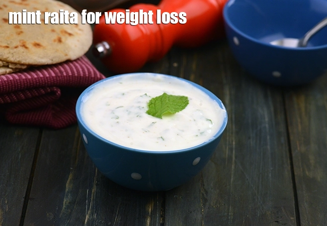mint raita for weight loss | healthy pudina raita with low fat curds | calcium rich mint raita