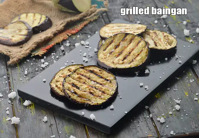 grilled baingan recipe | Indian grilled eggplant | spice roasted aubergine | healthy grilled brinjal snack |