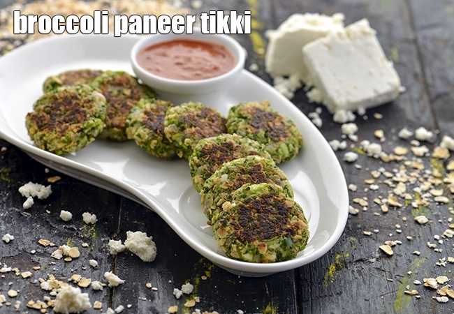 broccoli paneer tikki | broccoli oats paneer tikki | healthy Indian broccoli tikki