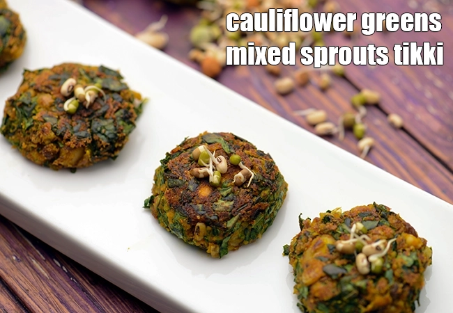 cauliflower greens mixed sprouts tikki recipe | cauliflower and sprouts tikki | healthy cauliflower greens tikki