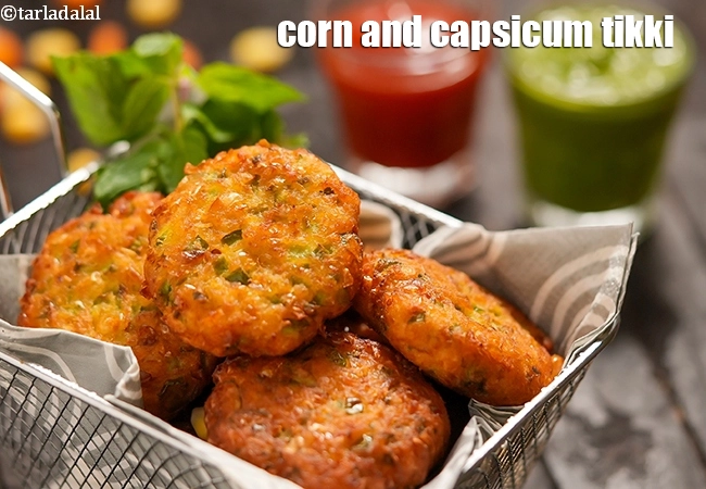 corn and capsicum tikki recipe | sweet corn veg tikki | Indian corn and capsicum cutlet | with … More..