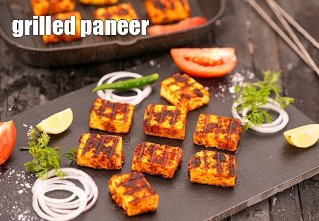 grilled paneer recipe | Indian grilled cottage cheese | grilled paneer on grill pan |