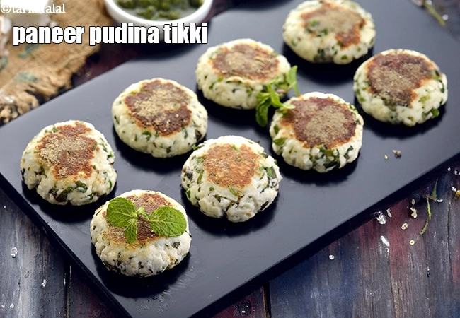 paneer pudina tikki recipe | paneer hariyali tikki | healthy paneer pudina tikki | protein rich cottage cheese tikki
