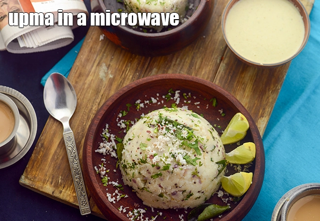 breakfast upma is made by roasting rava which is then a tempering of spices along with some onions and cooked on a slow flame for 3 to 4 minutes.