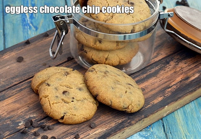 eggless chocolate chip cookies recipe | Indian style eggless chocolate chip cookies | vegetarian eggless chocolate chip cookies … More..