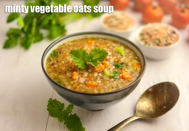 3. Minty Vegetable and Oats Soup | Indian oats vegetable soup | oats mint vegetable soup for weight loss | healthy oats soup