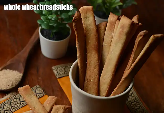 2. Homemade Whole Wheat Bread Sticks | whole wheat breadsticks recipe | Indian style whole wheat breadsticks | eggless wheat bread sticks with yeast