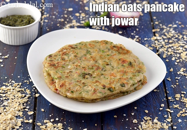 Indian oats pancake with jowar recipe | jowar oats pancake | healthy jowar and oats pancake for breakfast | how to make oats jowar pancakes at home |