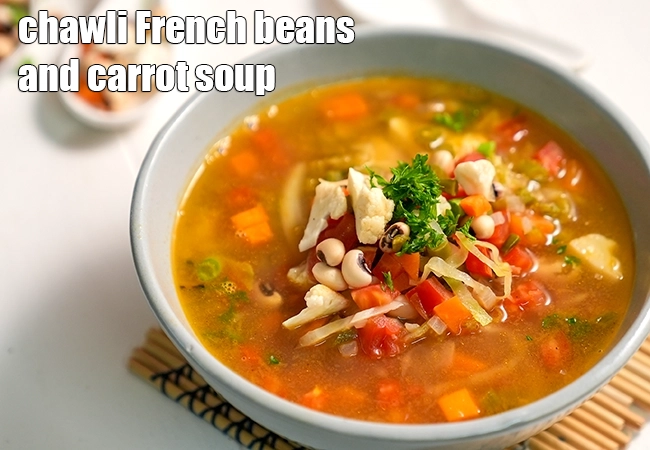 chawli French beans and carrot soup recipe | cowpeas vegetable soup | healthy black eyed bean veg soup … More..