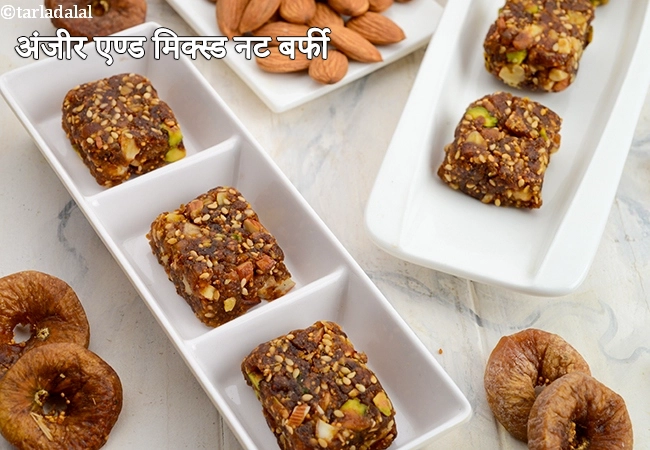 1. अंजीर और मिक्स्ड नट बर्फी | शुगर फ्री अंजीर बर्फी | अंजीर और ड्राई फ्रूट बर्फी | Anjeer and Mixed Nut Barfi जो बनाने में त्वरित है और आश्चर्यजनक रूप से स्वस्थ भी है।