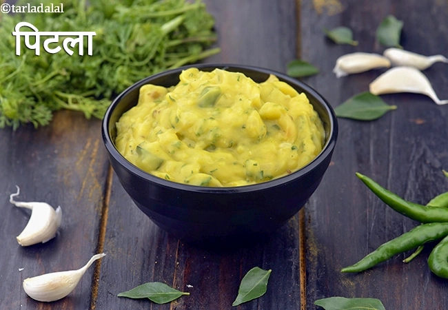 पिटला रेसिपी | महाराष्ट्रियन पिटला | बेसन पिटला | चावल भाकरी के साथ महाराष्ट्रीयन पिटल | पिटला रेसिपी हिंदी में | pitla recipe in hindi | न केवल महाराष्ट्रियन बल्कि कई भारतीय घरों में उनके साप्ताहिक मेनू में पिटला होता है। महाराष्ट्रीयन पिट्ठा फोलिक एसिड की दैनिक अनुशंसित खुराक का 62% प्रदान करता है।