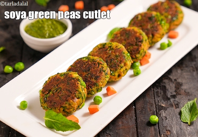 soya green peas cutlet recipe | healthy soya matar ke kebab | mutter soya tikki | 2 soya and green peas cutlet give 6.6 grams protein, 12% RDA. See calories of soya green peas cutlet.