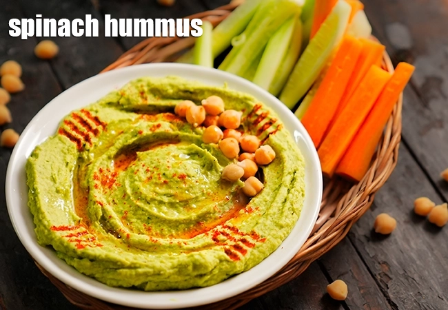 spinach hummus recipe | healthy Indian style spinach hummus | palak hummus for kids tiffins