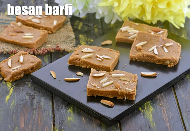When we think of Indian sweets or mithai the first thing that comes to our minds is barfi. An easy Indian Dessert recipe, Besan Barfi, has very few ingredients and takes very little time to cook, yet it has a rich taste and awesome aroma of cooked besan (chickpea flour).