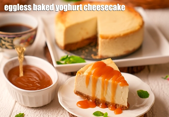 eggless baked yoghurt cheesecake recipe | Indian style no cream cheese baked cheese cake | yoghurt cheesecake