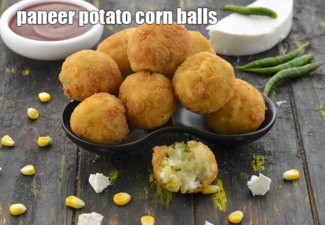 The combination of paneer, corn and potato bound with white sauce and deep-fried till a perfectly golden brown color, Paneer Potato and Corn Balls is simply an irresistible snack and pure indulgence.