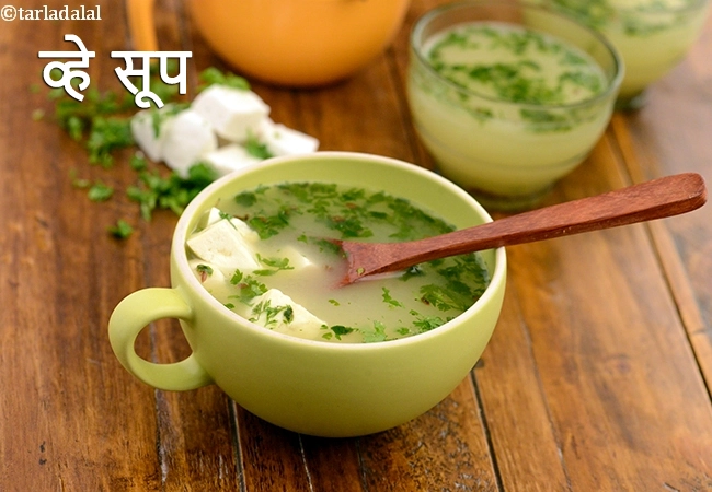 व्हे सूप मट्ठा से बनाया जाता है जिसे मसाले के तड़के में पकाया जाता है जिसमें पनीर जोड़ा जाता है। बस दूध लो, इसे उबाल लें और इसे कर्डल (curdle) करें। मट्ठा और पनीर को अलग करें और पनीर के साथ आपका पनीर के साथ हेल्दी व्हे सूप तैयार है।