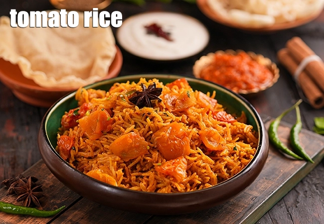 Tomato Rice tomato rice recipe | South Indian style tomato rice | thakkali sadam spicy and tangy rice preparation is ideal for packing in a lunch box, and sure to be enjoyed by young and old alike.