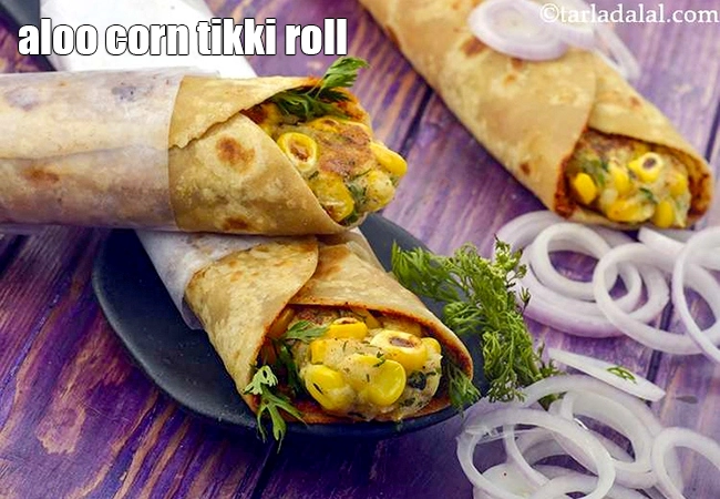 aloo corn tikki roll recipe | Indian aloo corn frankie | potato and corn frankie