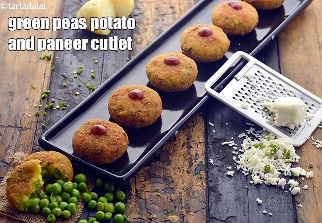 green peas potato and paneer cutlet recipe | aloo matar paneer tikki | matar paneer cutlet | green peas and cottage cheese cutlet |