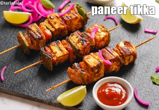 paneer tikka recipe | restaurant style paneer tikka | paneer tikka on grill pan | tandoori paneer tikka |