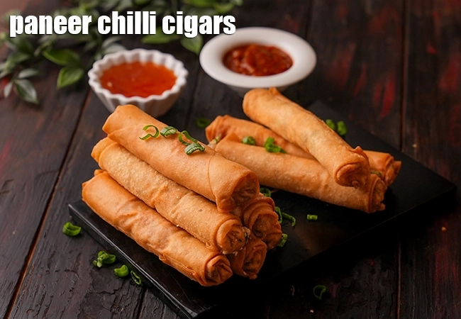 1. Paneer Chilli Cigars | how to make chilli paneer cigars | easy Indian paneer snacks | party starter