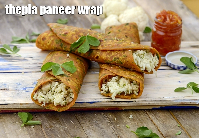 thepla paneer wrap recipe | paneer veg thepla | healthy cauliflower thepla