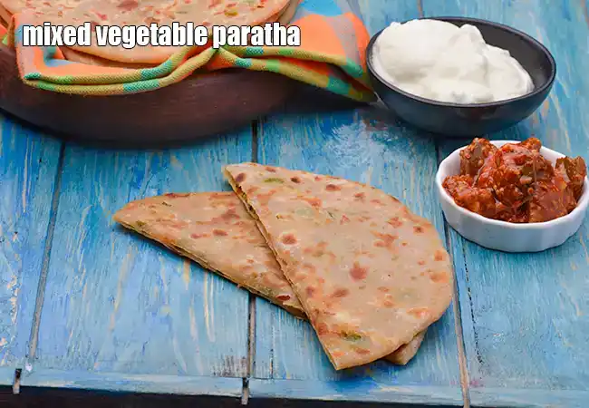 Mixed Vegetable Paratha is a nutritious Indian flatbread loaded with the goodness of fresh vegetables like carrots, peas, beans, and capsicum. The flavorful stuffing is seasoned with mild spices, making it both tasty and wholesome. Cooked on a hot tawa with ghee or butter, it turns golden and slightly crispy while remaining soft inside. This paratha is perfect for breakfast, lunch, or a light dinner, offering a balanced mix of taste and health. Rich in fiber and essential nutrients, it supports a healthy diet. Serve it with yogurt, pickle, or green chutney for enhanced flavor. Simple to prepare, it is a delicious way to enjoy vegetables in everyday meals.