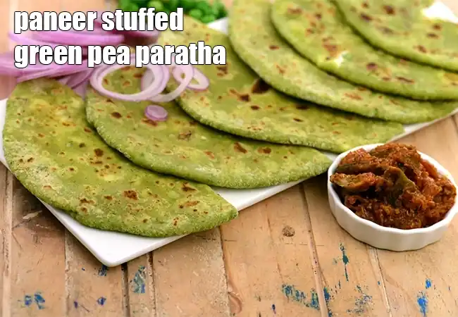 paneer stuffed green pea paratha recipe | matar paneer paratha | healthy paneer green peas paratha | with … More..