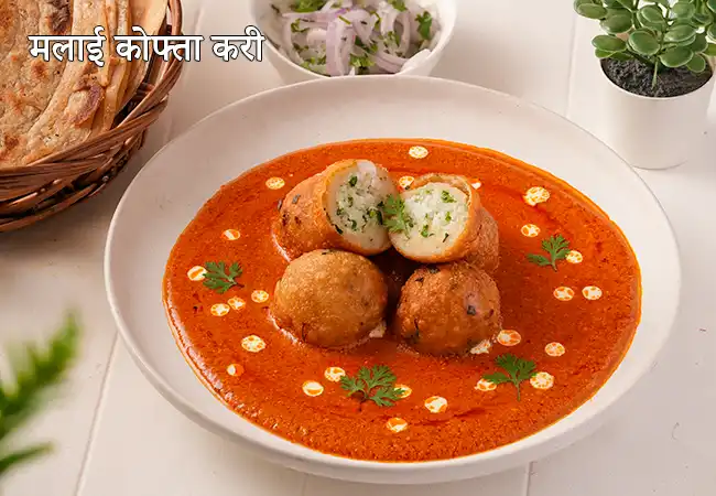 मलाई कोफ्ता एक समृद्ध और शाही अवध शैली की करी है, जो मुलायम पनीर के कोफ्तों से बनाई जाती है। कोफ्तों को हल्के मसालों के साथ तैयार कर सुनहरा होने तक तला जाता है। इसके बाद इन्हें काजू और क्रीम से बनी टमाटर आधारित ग्रेवी में पकाया जाता है। ग्रेवी की बनावट चिकनी और स्वाद हल्का मसालेदार होता है। यह व्यंजन विशेष अवसरों और त्योहारों पर बनाया जाता है। इसे नान, पराठा या जीरा चावल के साथ परोसा जाता है।