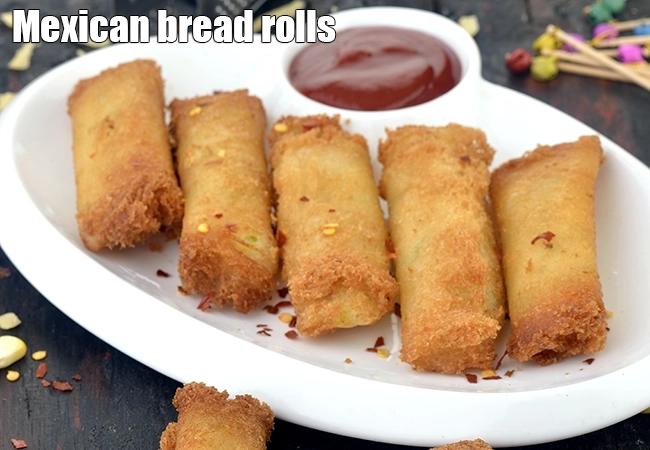 Mexican bread rolls recipe | Mexican rolls veg starter | quick party starter | Indian snacks with bread … More..