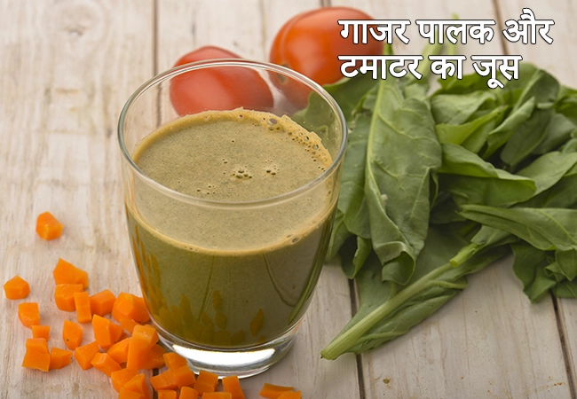 गाजर पालक और टमाटर का जूस की रेसिपी | गाजर टमाटर का जूस | कैल्शियम युक्त जूस | गाजर टमाटर डिटॉक्स जूस | Calcium Rich Carrot Spinach and Tomato Juice