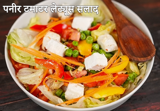पनीर टमाटर लेट्यूस सलाद रेसिपी | वजन घटाने के लिए पनीर सलाद | हरी मटर, शिमला मिर्च, अजवाइन का सलाद | गर्भावस्था का सलाद | प्रोटीन, फाइबर, विटामिन बी1 से भरपूर सलाद | Paneer Tomato and Lettuce Salad