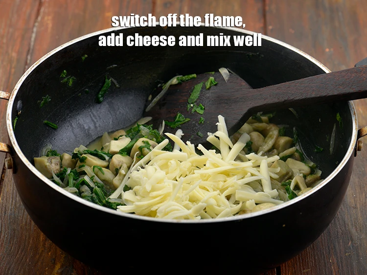 - Switch off the flame, add the cheese and mix well. Keep aside.